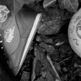 Stuffed child clothes and a ball in the bushes, no emotion, no sign of life, the remaining one we imagine. legs on the ground