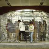 We showed the second show at the Xiamen university, there I built a temple from bamboo and tape, inside a video which was taken up in the original in a temple in Quanzhou, was to be seen. The video shows a slowmotion scene from the temple together with a text from an email which I have sent to my family.